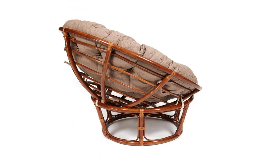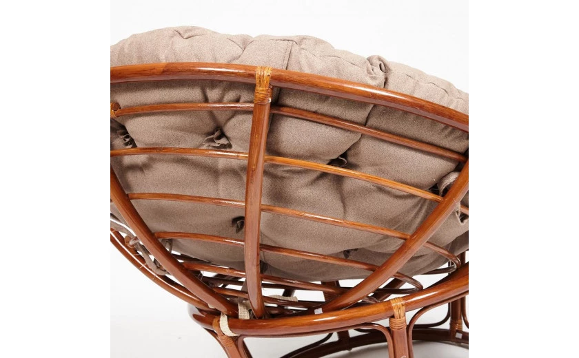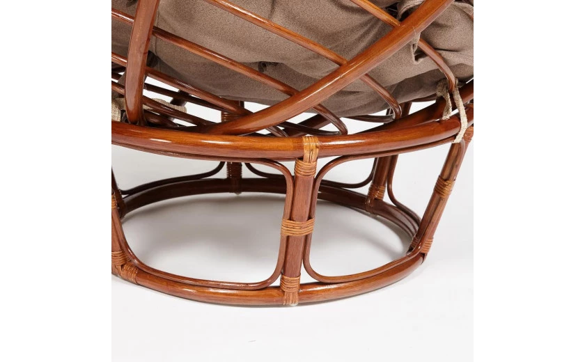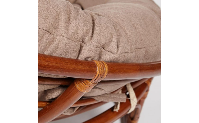 Кресло из ротанга «Папасан» (Papasan 23/01) + Подушка (Pecan (орех), экошерсть коричневая)